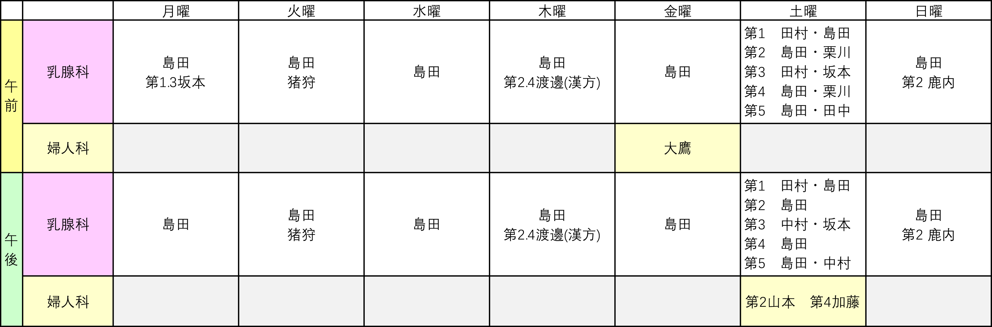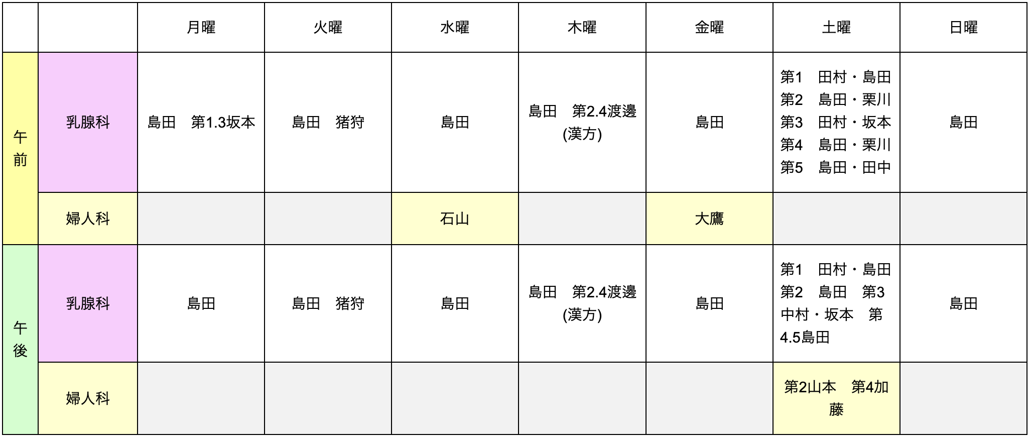 *島田医師は第3土曜日のみ不在、他はすべて診療を行っています。